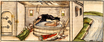 Doch Bruno konnte nur noch die Anfänge des 1040 begonnenen Dombaus erleben. Wieder einmal war er in Reichsangelegenheiten unterwegs und begleitete Kaiser Heinrich III. auf dessen Feldzug nach Ungarn. In Persenbeug bei Ybbs an der Donau (Niederösterreich) machte der Tross bei Gräfin Richlinde von Ebersberg Station. Doch ausgerechnet bei dem festlichen Mahl, das die Gräfin bereiten ließ, ereignete sich ein folgenschweres Unglück (Fries-Chronik): Die Festgesellschaft versammelte sich auf einer kleinen Holzterrasse im ersten Stockwerk des Schlosses. Die Terrasse füllte sich mit mehr und mehr Menschen, bis mit einem Mal der Boden durchbrach. Die Festgäste stürzten in das darunter liegende Stockwerk, wo sich die Badestube (Wäscherei) befand. Der Kaiser fiel in einen Waschzuber und überlebte das Unglück deshalb unverletzt. Sein Vetter Bruno aber verletzte sich schwer. Noch auf der Burg starb Bruno am 27. Mai 1045 an den Folgen des Unfalls. Er wurde am 16. Juni in der soeben fertig gestellten Krypta des Würzburger Doms bestattet.