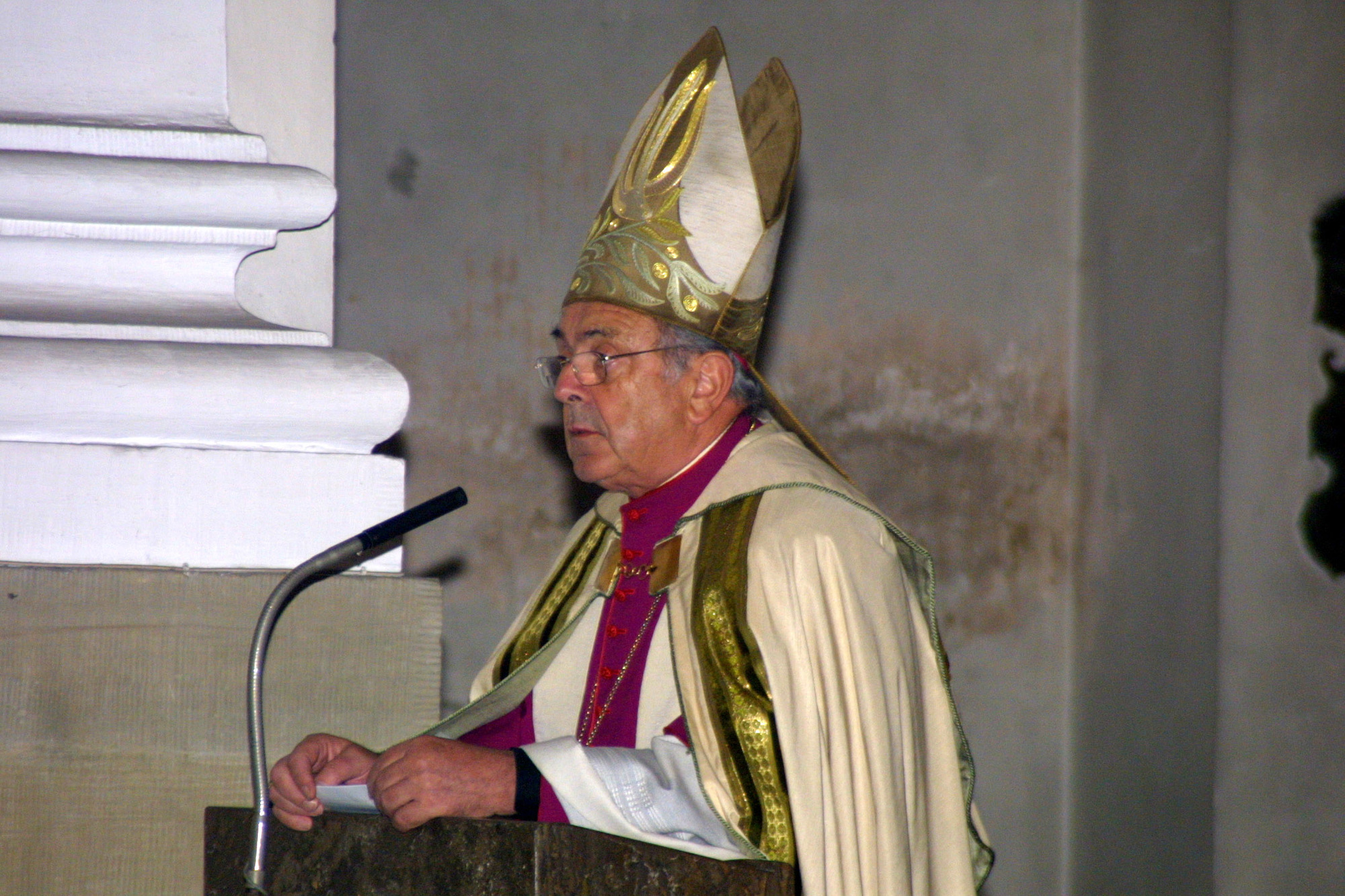 Würzburg (POW) Bei der feierlichen Marienvesper am Samstagabend, 1. Mai 2004, hat Dr. Andrea Ambrosi, römischer Postulator im Seligsprechungsverfahren für den Märtyrerpriester Georg Häfner, die so genannte Positio an Diözesanadministrator Weihbischof Helmut Bauer überreicht. Dieser bezeichnete Häfner vor über 200 Gläubigen in der Neumünsterkirche als einen Würzburger, „der wahre Größe, Treue und gegen das Böse Widerstandskraft“ gezeigt habe. Ambrosi hat die „Positio“ für das endgültige abschließende Verfahren bei der Selig- und Heiligsprechungskongregation erstellt. Die Dokumentation des römischen Postulators wurde für das Schlussverfahren einleitend dem Heiligen Vater übergeben. Um diesen Akt auf dem Weg zur Seligsprechung des Märtyrerpriesters im Bistum Würzburg bewusst zu machen, wurde sie gleichzeitig dem Diözesanadministrator überreicht. An der Zeremonie nahm mit Kardinal Peter Kodwo Appiah Turkson, Erzbischof von Cape Coast in Ghana, auch ein ranghoher Vertreter der Weltkirche teil.